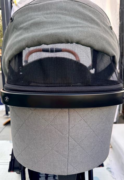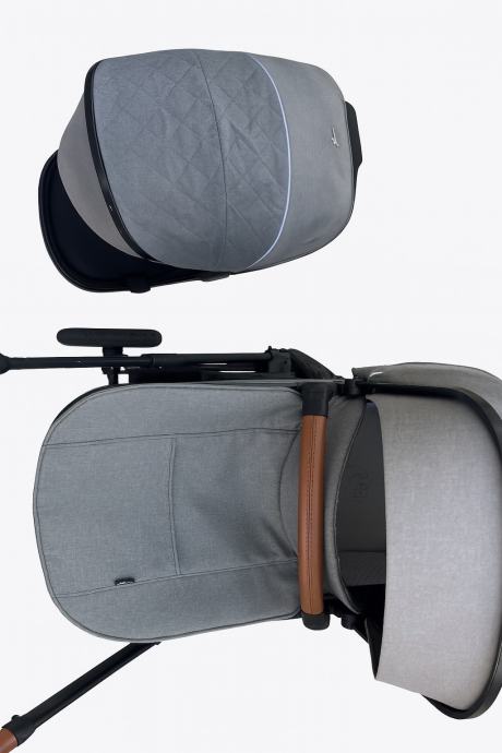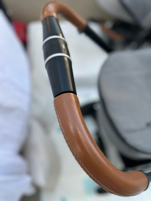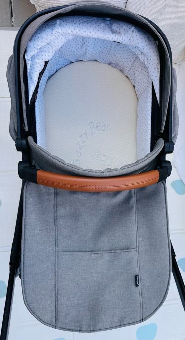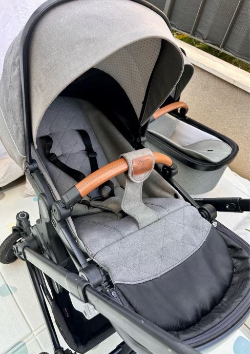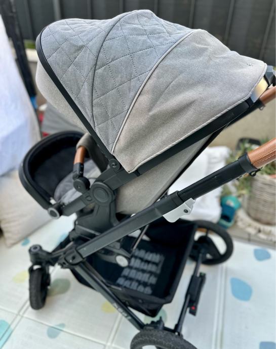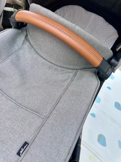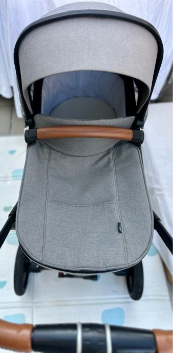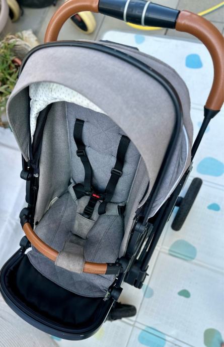 Kolica su u elegantnoj prirodno zelenoj boji sa smeđim kožnim detaljima. Korištena pažljivo, iz nepušačkog doma bez kućnih ljubimaca.