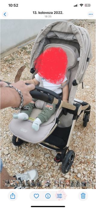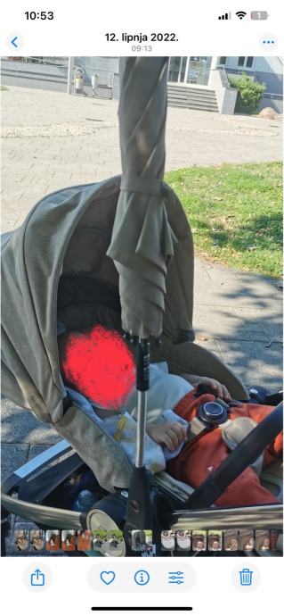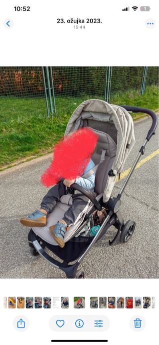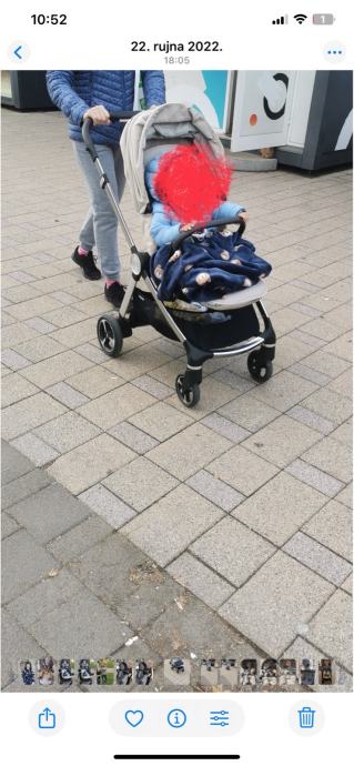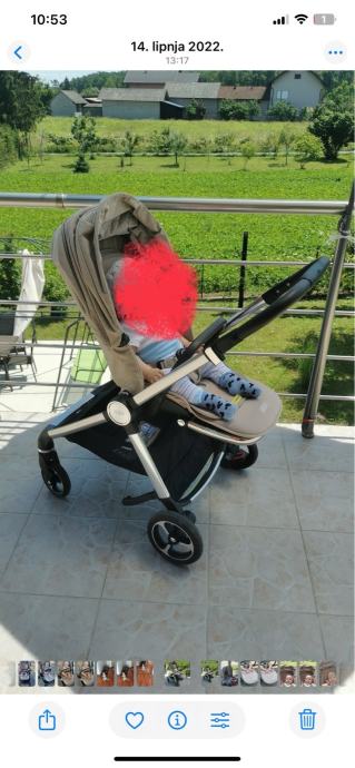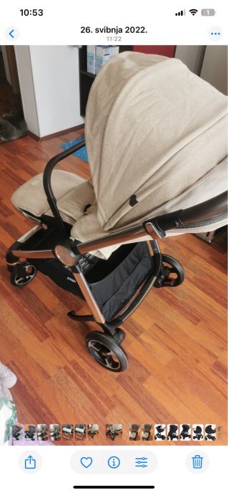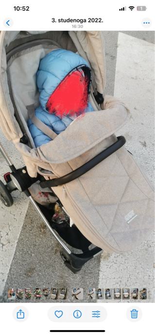 Košara za novorođenče nije otvarana jer su kolica kupljena kad je dijete imalo 6mjeseci. Tragovi koristenja vidljivi samo na konstrukciji od sklapanja i sjedistu