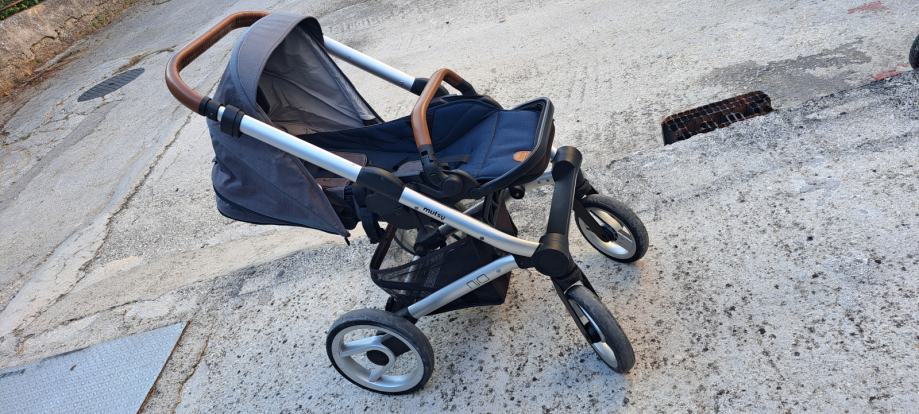 Kolica marke Mutsy Nio North blue ( kupljeno u Baby centar 2018 ) s košarom za novorođenče, sportskim sjedalom, te kišobranom - prodajem sve u kompletu.