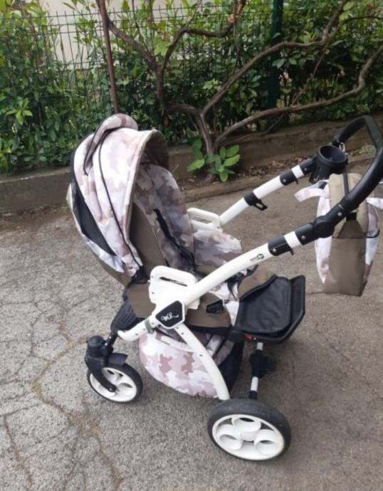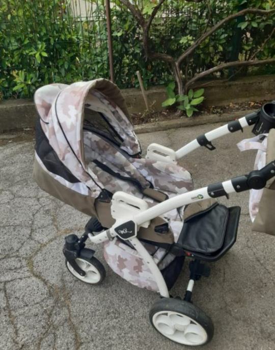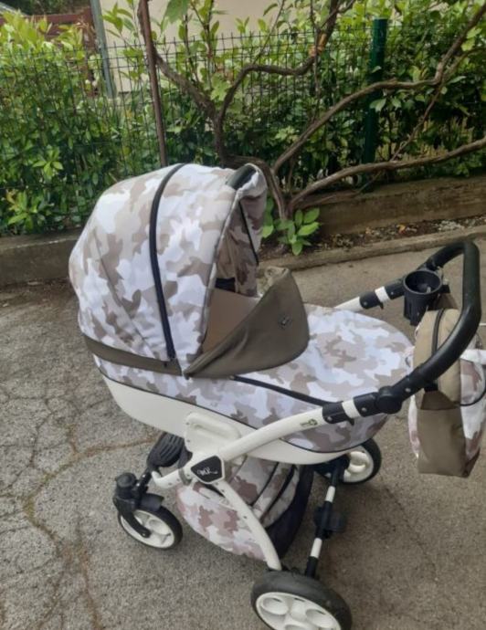 - torba za pelene i bocice ( isti dezen kao kolica-maskirna ) sa naramenicom i kukicama na torbi da se mogu zakacit na kolica