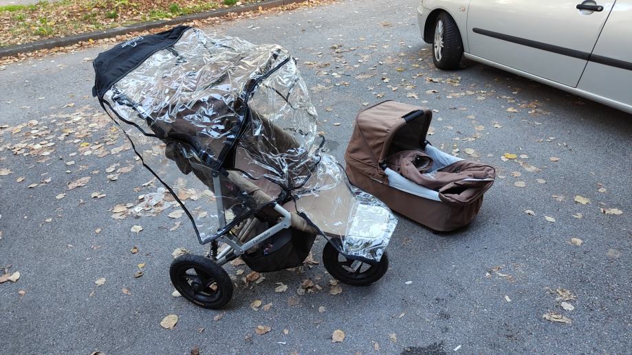 2 u 1 dječja kolica s opremom za kišu i hladno vrijeme.