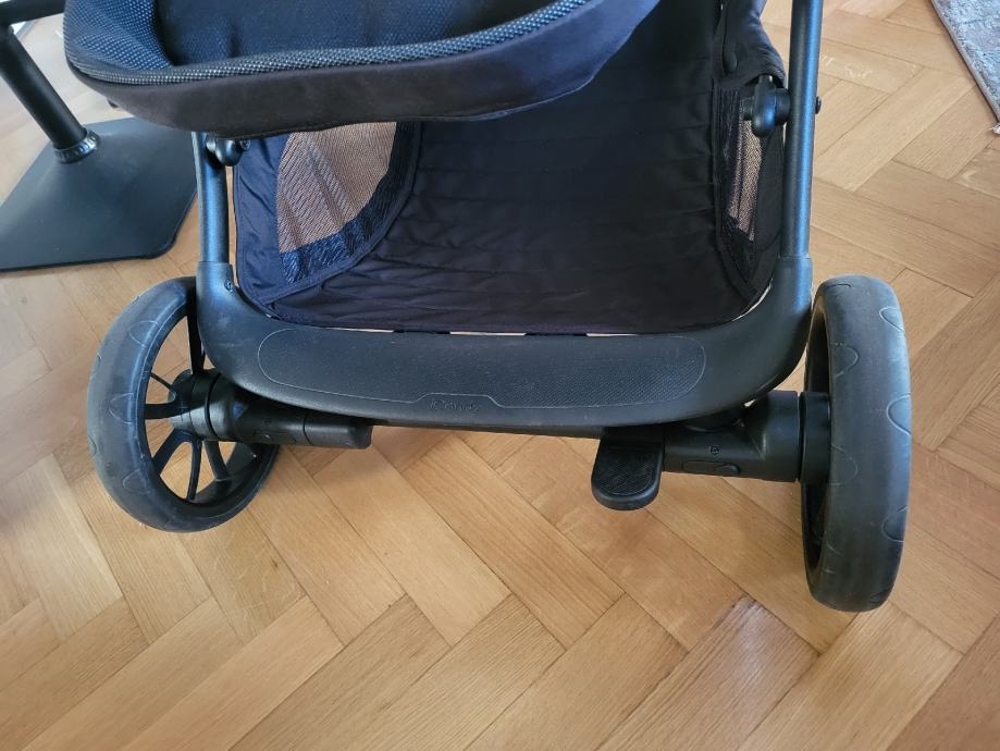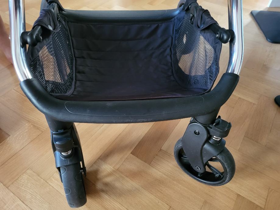 Dolaze s košarom za novorođenče i sportskim sjedalom koji može biti okrenut u oba smjera, podizačima sjedala, adapterima za AS, torbom i podlogom za prematanje te kišnom navlakom. Imam i univerzalnu mrežicu za komarce.
