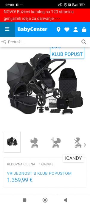 Inovativna iCandy zimska vreća koja jednostavnim otkopčavanjm postaje obloga sjedišta, prati stil i dizajn materijala iCandy Cerium kolica. Dolazi u paketu s kolicima te spašava roditelje od dodatne kupnje mnogobrojnih dodataka.