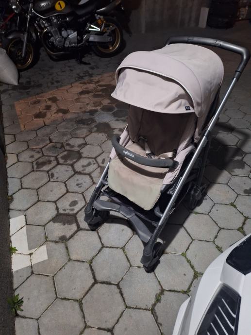 Oprana su i spremna za novu bebu. Kolica su lagana, sklapaju se i rasklapaju jednom rukom - kišobran sklapanje, s tim da se u kišobran mogu sklopiti cijela(kontrukcija i sjedalo) pa su besplatna za puItovanje avionom. Jaje(korištena samo jednom), košara( skoro i ne korištena) i sportsko sjedalo mogu biti okrenuti u oba smjera. Sigurnosni pojas na sportskom sjedalu je s uporištem u 5 točaka i jastučićima za ramena. Plus postolje original inglesina za jaje i košaru. Apsolutno praktična i za manja auta i gepeke.