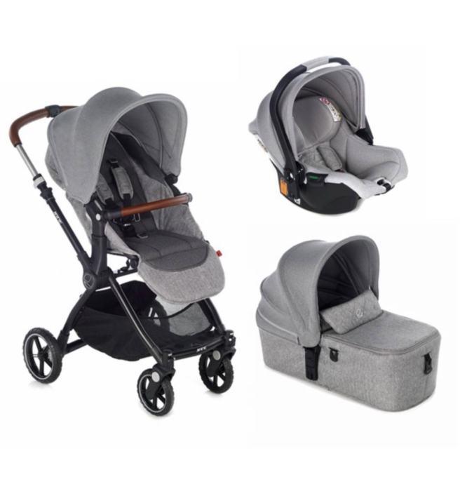 Kendo kolica 3u1 sastoje se od: kolica sa sportskim dijelom, Micro košare za kolica, Koos isize R1 autosjedalice, torbe s podlogom za prematanje i kišne kabanice.