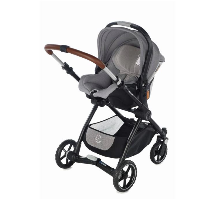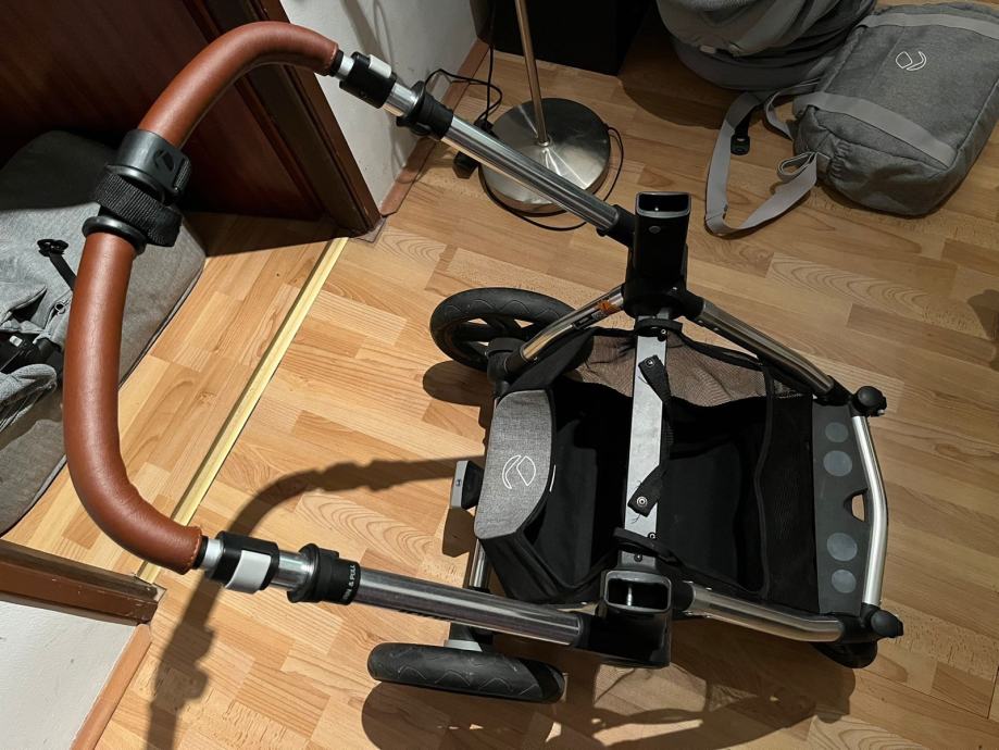 Izuzetno lagana aluminijska konstrukcija opremljena s patentiranim Pro-fix sustavom koji omogućuje postavljanje i skidanje sjedećeg dijela, autosjedalice i košare uz pomoć samo jednog klika.