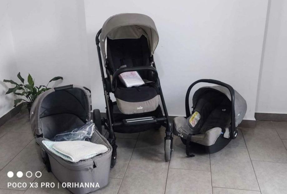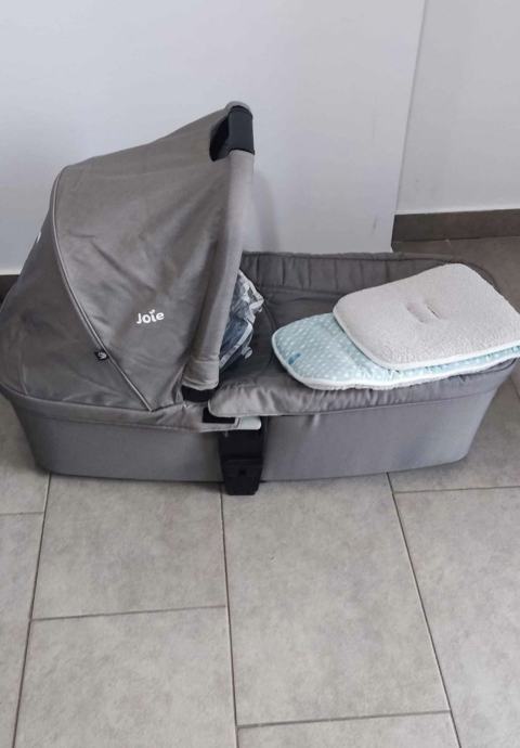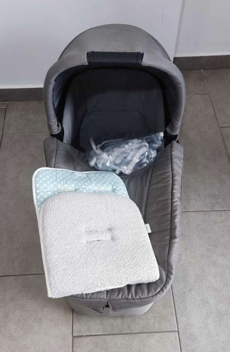 Košara, jaje i sportski dio koji ide i u ležeći položaj. Uz kolica idu i upute,zaštita od kiše te dvije torbe sa podlogom za presvlačenje.