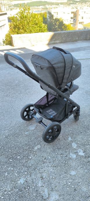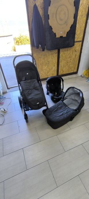 Prodajem Joie kolica 3u1 iz 2022. godine u sivoj boji. Sjedalo se može okrenuti u oba smjera, prema roditelju i prema naprijed. Kolica dolaze s mogućnošću pretvaranja u ležeći položaj, što je vidljivo na fotografijama gdje je kapica potpuno razvučena. Opremljena su sigurnosnim pojasevima, osloncem za noge te velikim kotačima koji omogućuju stabilnu vožnju. Okvir je tamne boje i čvrste konstrukcije.