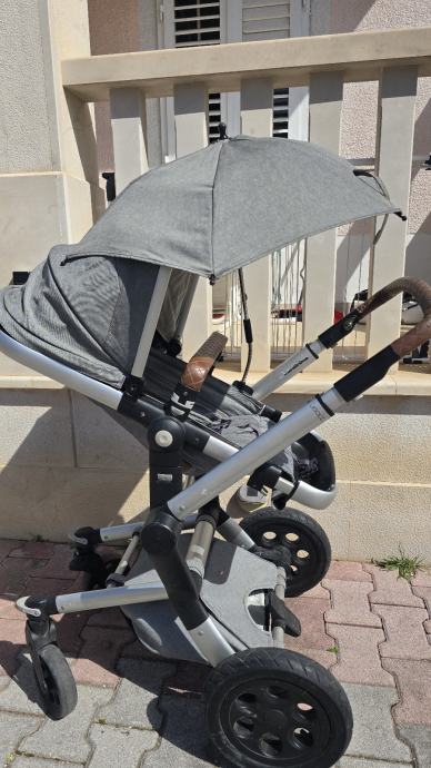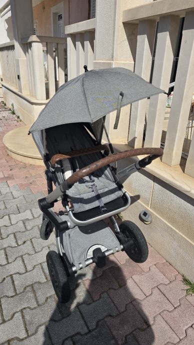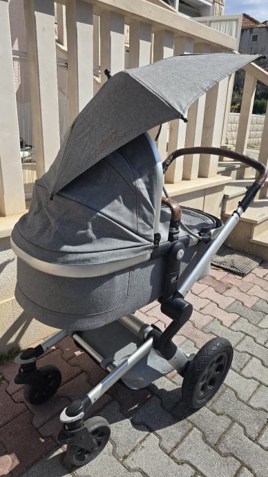 Prodajem dječja kolica Joolz iz 2016. godine u sivoj boji. Kolica dolaze s korpom, sjenilom te kišobranom. Sjedalo se može okrenuti u oba smjera, što je praktično za svakodnevnu upotrebu. Okvir je aluminijski s kotačima pogodnim za različite podloge, a ručka je presvučena smeđom kožom.