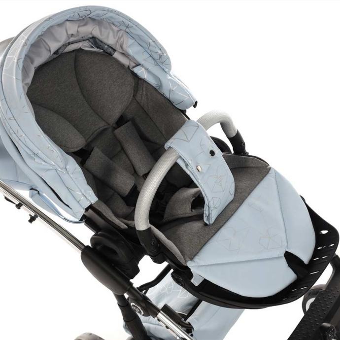 Udobna košara za novorođenče izrađena od eko kože (može se koristiti u oba smjera putovanja), moderne i elegantne krivulje, u kombinaciji s mekim tkaninama i ujednačenim linijama.