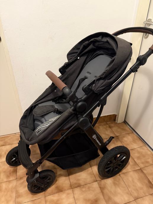 Kotači na pumpanje, amortizeri, podesiva ručka, podesivi nagibi, prozorčić, protok zraka, košara, sklapanje u jednom potezu, obostrana vožnja, nožna kočnica, zaključavanje kotača