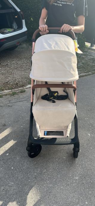 Prodajem nova kišobran kolica Nanan u bež boji iz 2024. godine. Kolica su kompaktna i praktična za svakodnevnu upotrebu, s lakšom konstrukcijom koja olakšava nošenje i spremanje. Sjedalo je postavljeno u smjeru vožnje, a kolica su opremljena sigurnosnim pojasom. Navlaka je periva i s UV zaštitom +50.