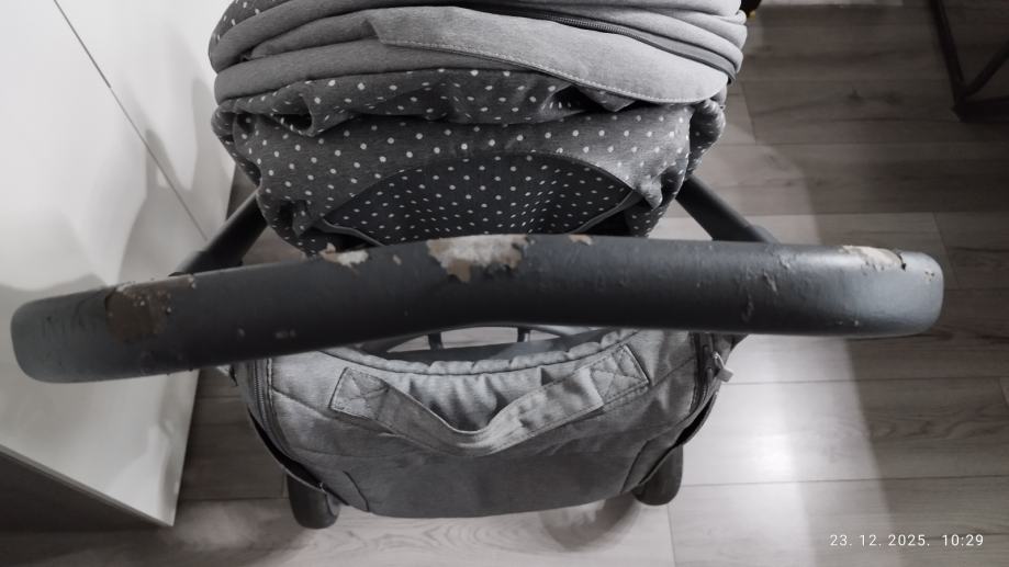 KOLICA SU KORIŠTENA TE POSTOJI OŠTEĆENJE NA RUČKI – SKAJ JE OGULJEN (VIDLJIVO NA FOTOGRAFIJAMA). OŠTEĆENJE JE ISKLJUČIVO ESTETSKE PRIRODE I NE UTJEČE NA FUNKCIONALNOSTI KOLICA.