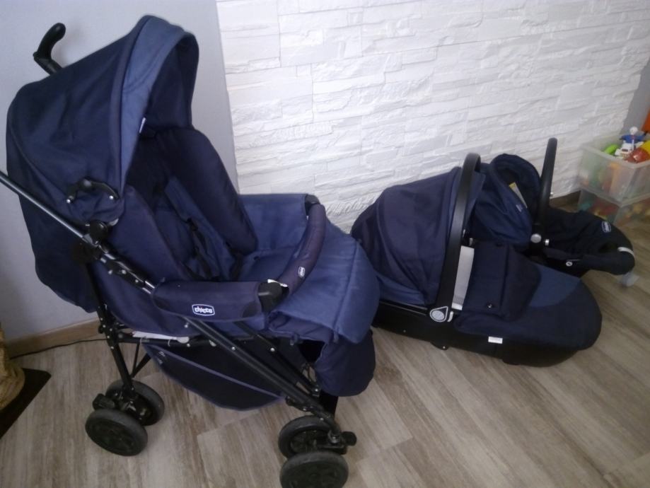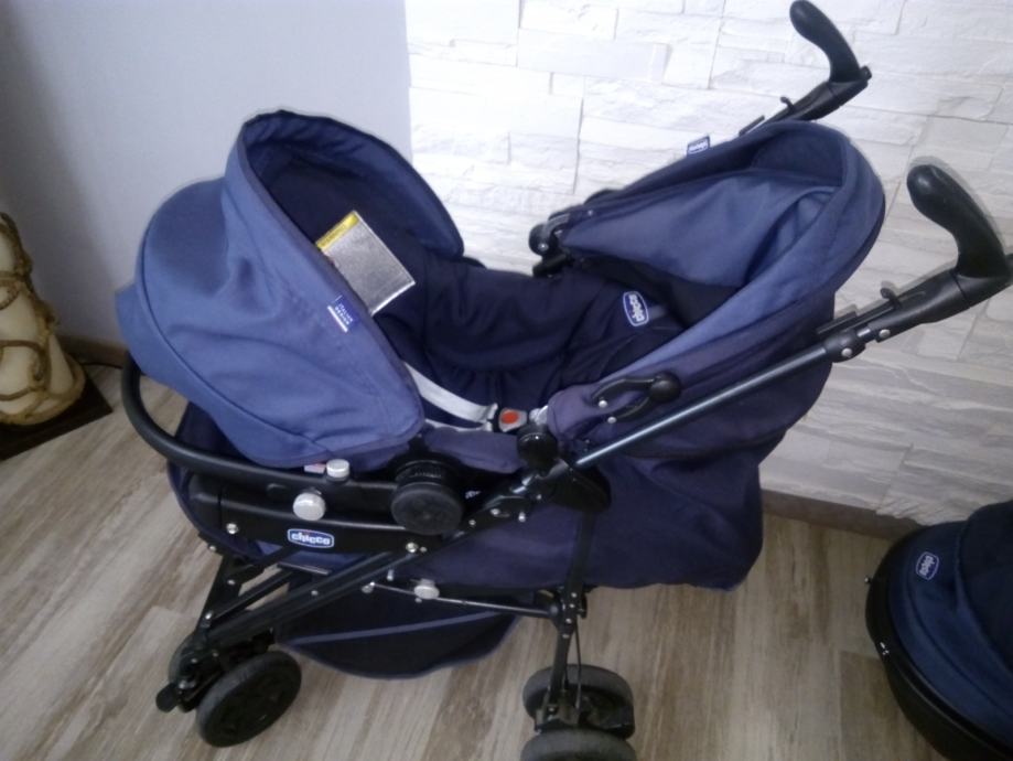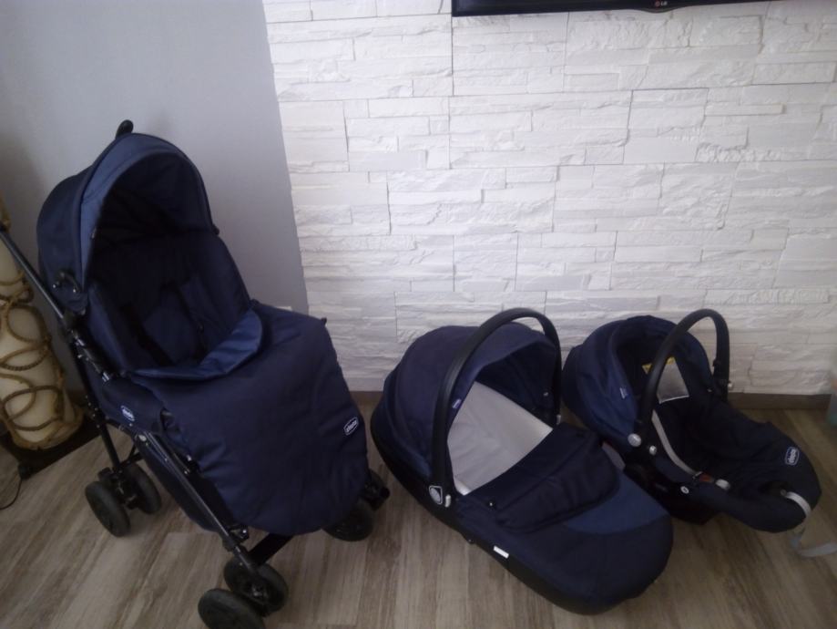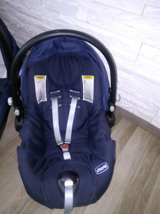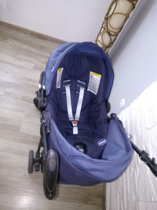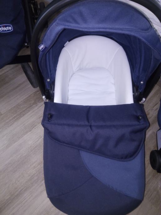 Kolica u super stanju!Košara za bebu se može podizati u gornjem dijelu pa beba može ležati na ravnom ili povišenom.Jaje na kolicima se može pomicati isto iz sjedećeg položaja prema ležećem.Treći dio sportski ima navlaku za zimu i navlaku za kišu.