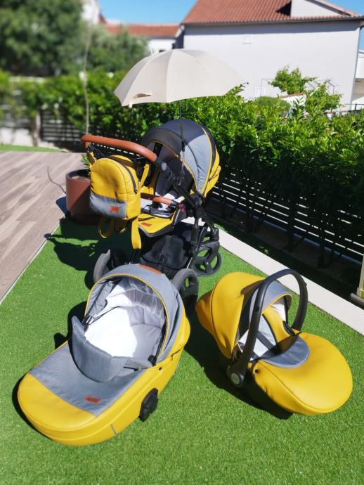 sva 3 nastavka (košara, autosjedalica i sjedeće sportsko sjedalo) montiraju se u oba smjera vožnje, po želji