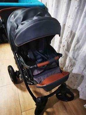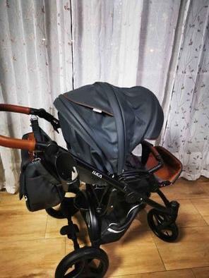 zaštitna prečka za bebu od kvalitetne eko kože. Velika torba za mamu i bebu,remen za rame, brza i jednostavna instalacija na ramu kolica + dodatna torba koja se nalazi u shopping košarici.