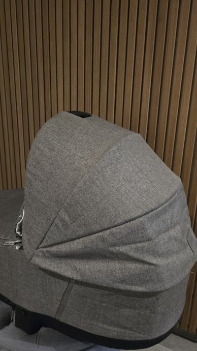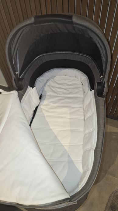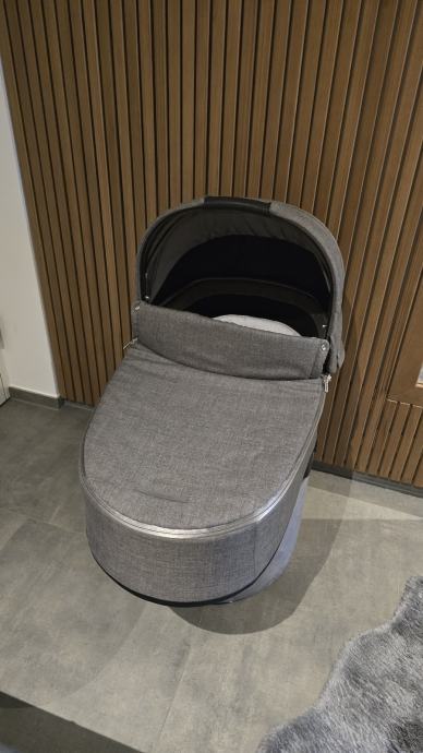 Košara za kolica Priam, modernog izgleda. Savršena je za krevet u pokretu kroz bebine prve mjesece (od rođenja do 9 kg ili približno 6 mjeseci).