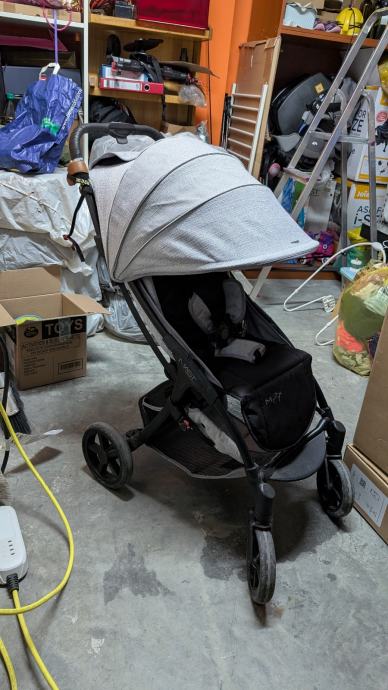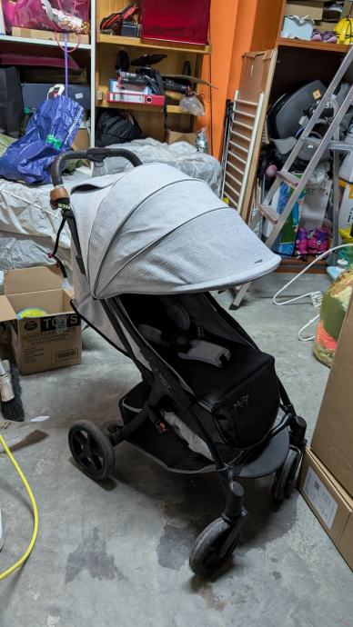 Prodajem rabljena dječja kolica Mast M2X. Radi se o modernim kolicima s postavljenim sjedalom u smjeru vožnje. Kolica dolaze s velikim nadstrešnicom koja pruža dobru zaštitu od sunca, sigurnosnim pojasom za dijete te velikom košarom za odlaganje stvari ispod sjedala. Okvir je crne boje, a tapecirani dio sjedala sivo-crne kombinacije. Kotači su robusni i pogodni za svakodnevnu upotrebu.