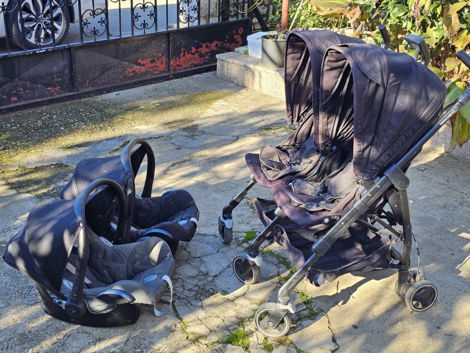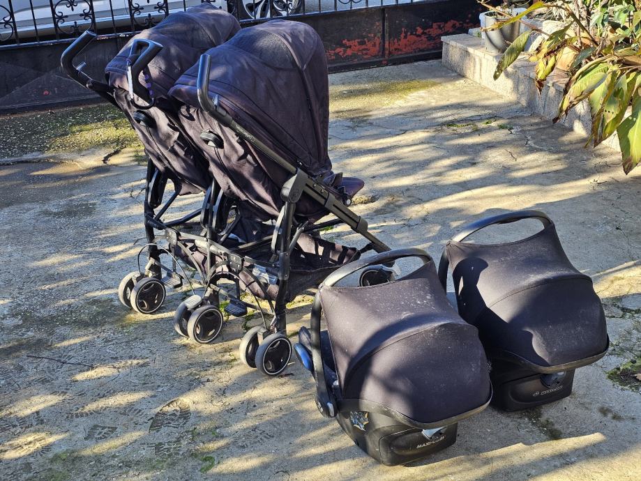 1. Kišobran kolica za blizance sa dodacima za priključak Maxi Cosi jaja