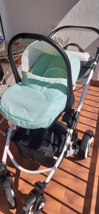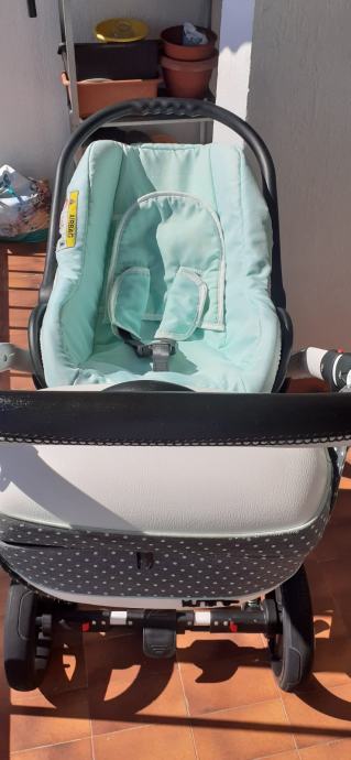 Konstrukcija (okvir) + duboka gondola + sportska kolica + autosjedalica (s adapterima koji unaprijed odgovaraju modelu autosjedalice)