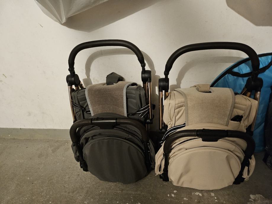 Sa adapterima ih možete spojiti i sami gurati dvoja kolica, a jednostavnim skidanjem adaptera ako vas je dvoje svatko gura jedna ili ako idete negdje samo sa jednim djetetom, uzmete samo jedna. Meni osobno su bila odlična i praktična kolica. Prodajem ih jer su djeca narasla.