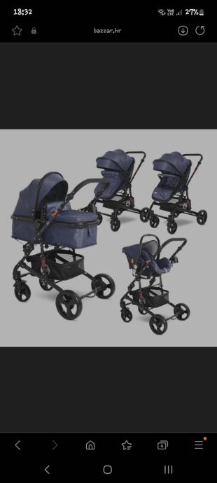 LORELLI ALBA CLASSIC Kolica 3u1 Jeans Blue: Košara + Autosjedalica + Zimska Navlaka (0mj+) - (do 15kg/96cm)Kolica Lorelli Alba Classic 3u1 pružaju sve što Vam treba za sretan početak majčinstva: košaru za novorođenče koja se kasnije pretvara u udobna sportska kolica, autosjedalicu i zimsku navlaku. Lako se sklapaju i rasklapaju, zauzimaju minimalno mjesta, a mogu se koristiti i od samog rođenja...