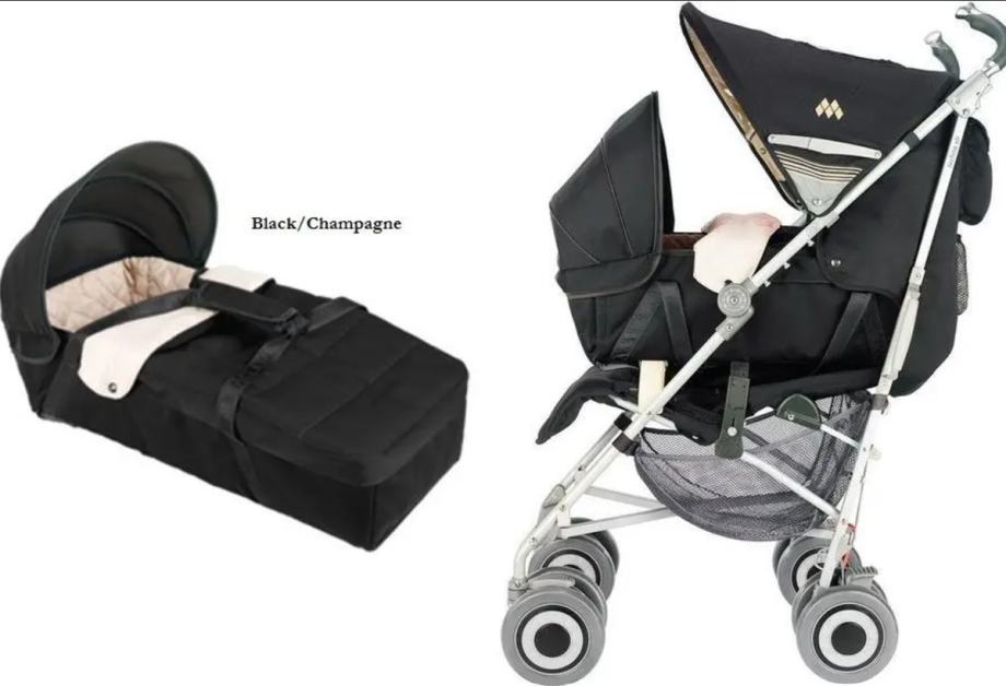 Dodatak: Maclaren košara za novorođenčad crne boje (prilažem primjer kako se stavljaju na kolica - slika je s interneta jer je košara oprana i spremljena u kutiju)
