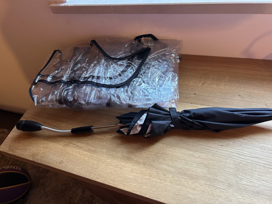Malo korištena,uz njih dolazi zaštita od kiše,zimska navlaka, novi suncobran koji je kupljen zasebno,također gratis novi zapakirani adapteri za autosjedalicu i košaru koja se kupuje zasebno.