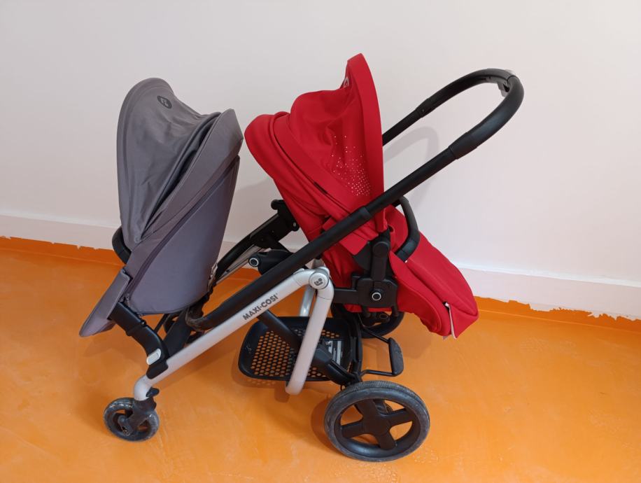 Prodajemo kolica Maxi Cosi Lila duo crvene boje + dodatno sivo sjedalo za veće dijete. Malo korištena jer je najčešće jedno dijete odlučilo da ne ide u šetnju pa smo koristili manja kolica. Ručka kolica je podesiva na tri dužine, a sjedalo na pet pozicija. Sjedalo (0M+) ima pomični krović i dvostruku podlogu - za ljeto i zimu. Ima pokrivalo za noge koje se kopča na gumb, a može se i maknuti. Maknuti se može i zaštitna prečka za dječje ručice. Ugrađeno je sjenilo protiv sunca/kukaca koje se navuče preko sjedala. Uz njega dolazi i umetak za bebe. Ispod dolazi velika košara za potrepštine ili kupovinu. Uključena je i navlaka za kišu te dva adaptera za autosjedalicu (jaje). Na poklon dajemo stalak za čašu i suncobran.