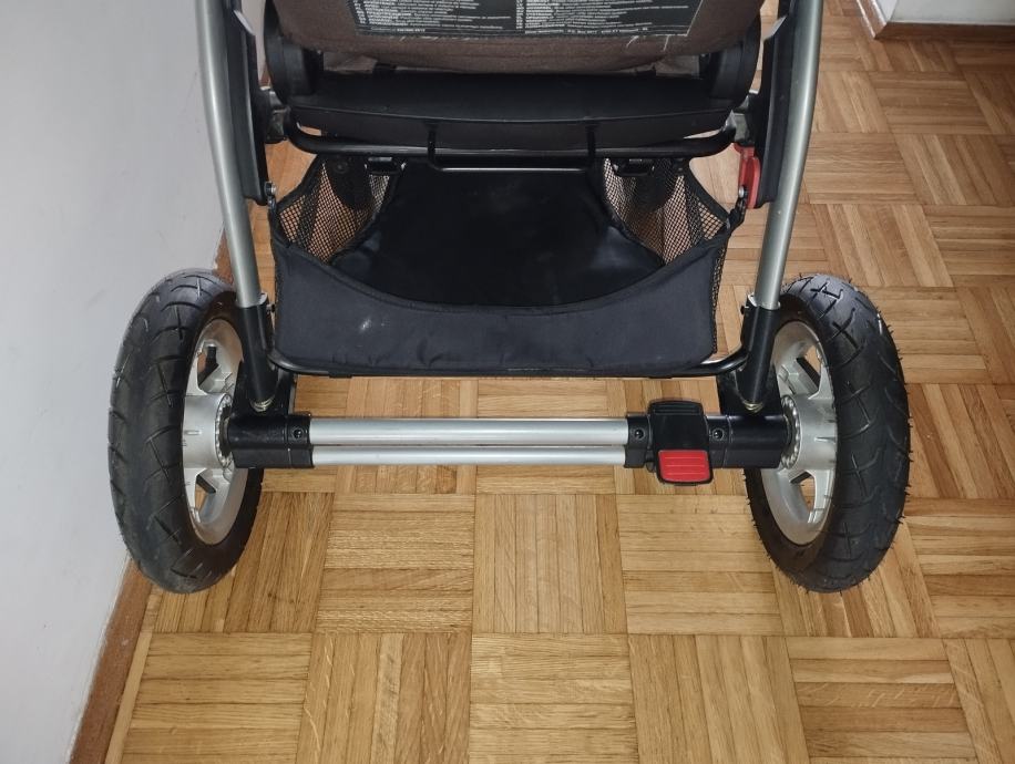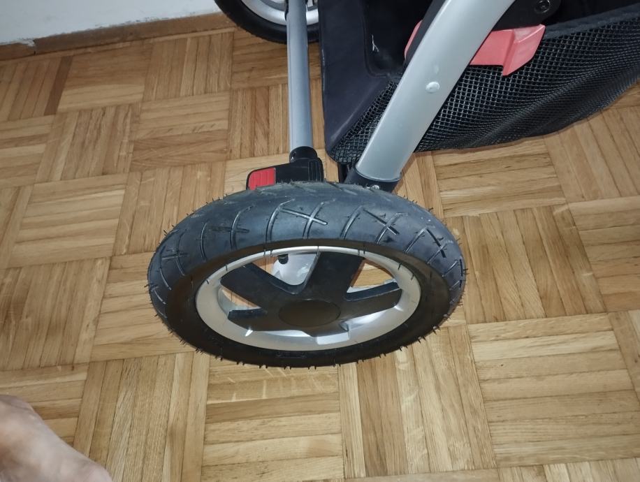 Kotači imaju amortizere pa su idealni za svakakve terene, a gume su NOVE. Pošto se radi o kolicima s 4 kotača izuzetno su stabilna te idealna i za neravne terene te prolazak preko rubnika. Ručka se može podesiti po visini. Kolica se mogu sklopiti i rastaviti te tako stanu jednostavno u automobil ili stan.