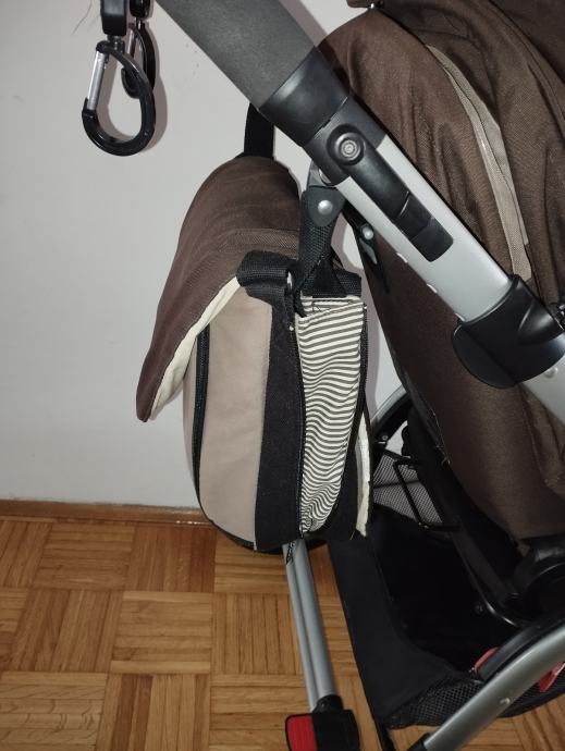 * Košaru za bebu koja je prostrana i udobna, te ima zaštitnu mrežu protiv komaraca/kukaca, te adaptere na koje je, osim košare, moguće staviti i autosjedalicu grupe 0 tj "jaje". Svi djelovi mogu se oprati i skinuti.