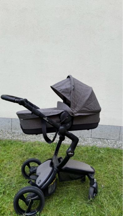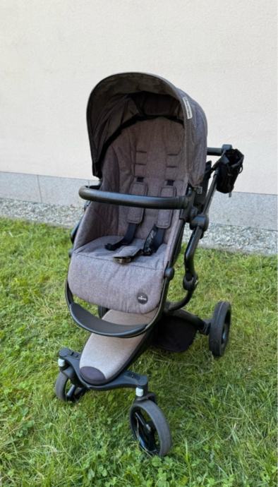 Komplet sadrži konstrukciju crne boje, sivo crnu košaru za novorođenče,sivo crno sportsko sjedalo
