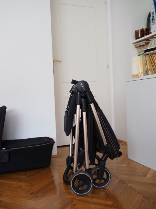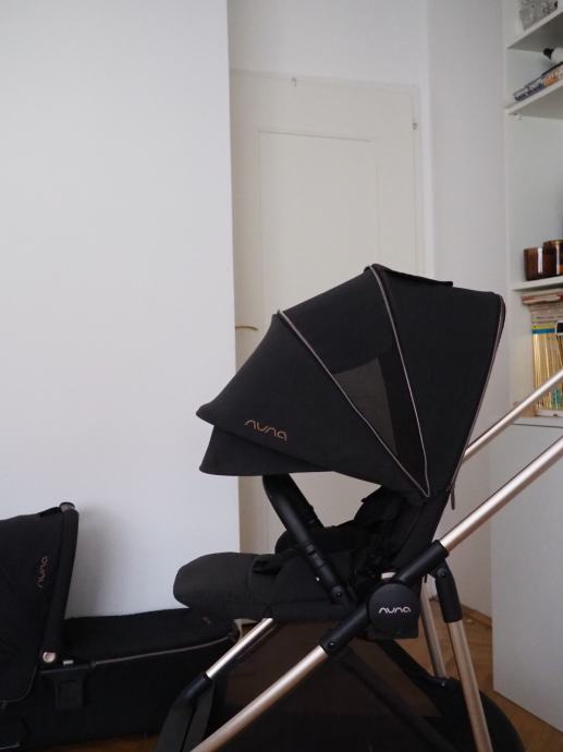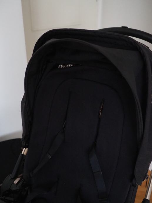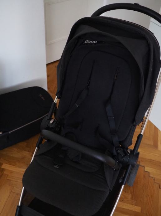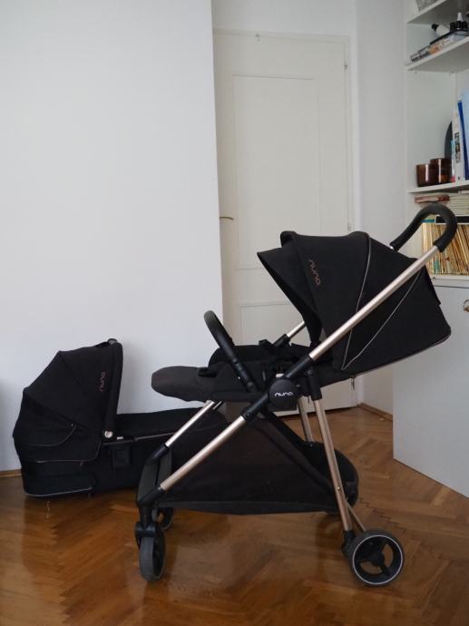 Prodajem Nuna Ixxa kišobran kolica u Riveted Rose boji (crna tkanina s nježnim rose gold metalnim dijelovima). Kolica smo dosta kratko koristili tako da su u odličnom stanju, navlaka naslona sportskog sjedala je malo depigmentizirana (vidljivo na jednoj od slika), što ne utječe na njenu fukncionalnost, a kako se može okrenuti, ne mora utjecati ni na izgled. Kolica su jako lagana i kompaktna, vrlo lako se sklapaju jednom rukom, puno je prozirnih detalja tako da bebi stalno dolazi svježi zrak, a uz kolica dolazi zaštita od kiše.