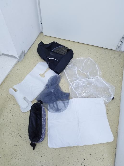 Gratis dajem navlaku za kišu,navlaku za komarce, vreću za ispod košare, manju torbicu (ako se đirate s bebom u blizini, stane boca,novčanik...) Te podlogu za jaje/sportski dio koji drži normalnu temperaturu djeteta uslijed zime ili ljeta