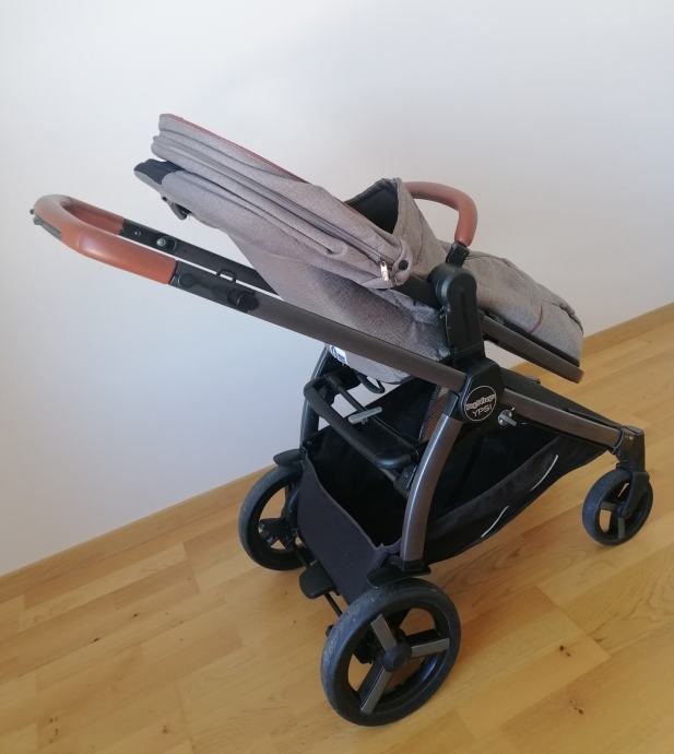 Sportsko sjedalo se okreće u oba smjera, preklapa i sklapa zajedno s konstrukcijom i podesivo je u 3 položaja: sjedeći, odmarajući i ležeći. Kupola sjedala štiti od sunca UPF 50+. Podešavanje visine kupole sjedala koja prati rast djeteta. Zaštitna prečka na sjedalu presvučena Eko kožom. Navlaka za noge (footmoff) otvara se i zatvara zip patentom. Integrirani, podesivi oslonac za noge. Velika i proširiva shopping košara. Easy drive sustav – vrlo lagana upravljivost i okretnost u 360° s kotačima koji imaju 12 kuglične ležajeve. Teleskopska ručka za upravljanje s gumenim umetkom i presvučena eko kožom. Prekidač na konstrukciji za otključavanje i zaključavanje rotacije prednjih kotača. Kočnice na stražnjim kotačima.