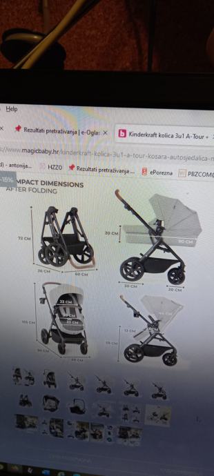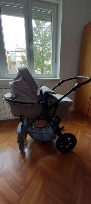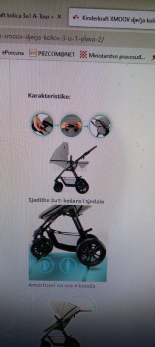 Prodajem Kinderkraft Xmoov višenamjenska kolica 3u1 s košarom i autosjedalicom, svjetlosiva.