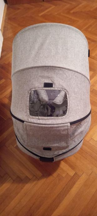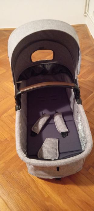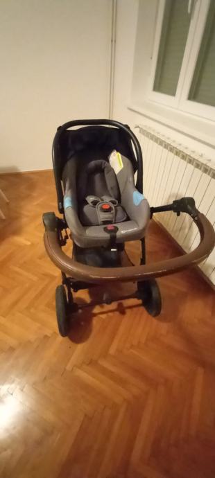 Autosjedalica (jaje) ima adaptere za pričvrstiti na kolica, ručku podesivu u 3 točke, sjenilo za zaštitu od sunca i umetak za vrlo sitnu djecu.