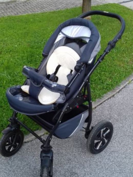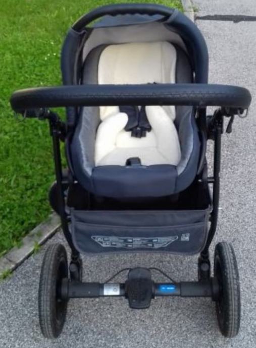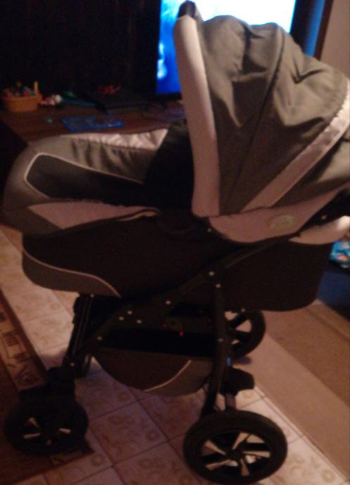 Sa košarom za novorođenče, autosjedalicom i sportskim dijelom..u dobrom stanju. Placena blizu 3000 kn