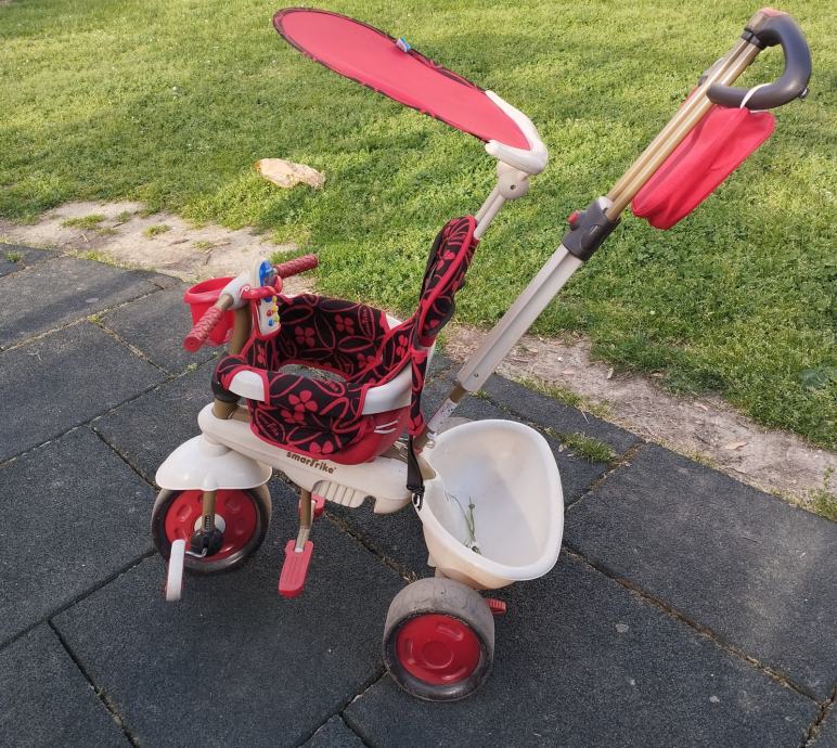 Hitno prodajem crvenu guralicu smartTrike. Sjedište u smjeru vožnje, zaštita od sunca, torbica za stvari. Spuštanjem nogara triciklić postaje biciklić. Guralica je u odličnom stanju. Moguće ju je pogledati u Rudešu.