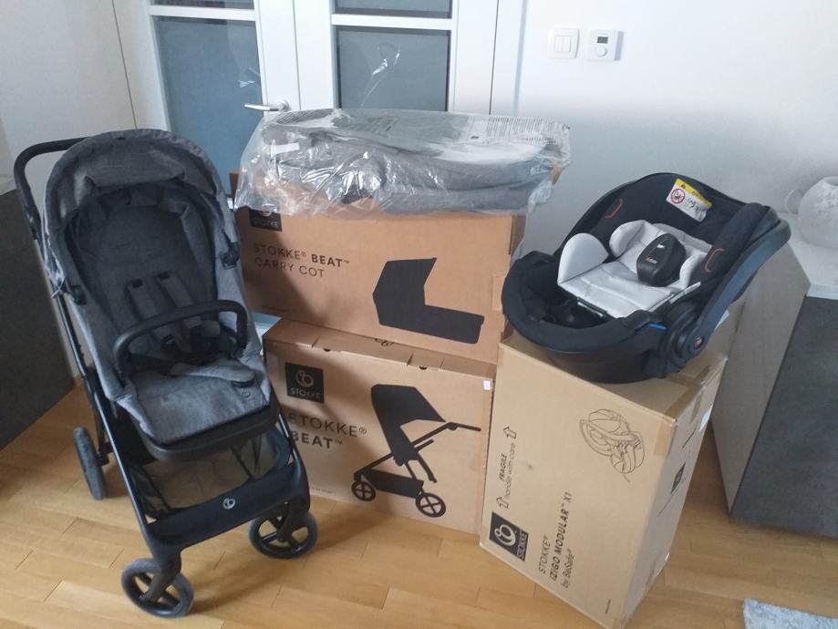 Kolica se sastoje od konstrukcije, košare za novorođenče, sportskog dijela i jaja ili autosjedalica.