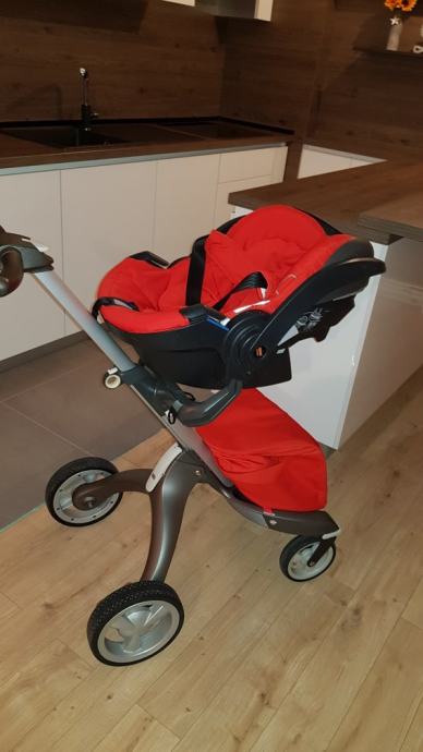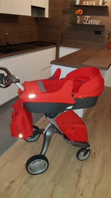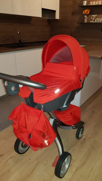 Prodajem kolica marke Stokke. Od opreme imaju: lezeci dio, sportski dio s umetkom, autosjedalicu, kabanicu za kisu, mrezu za komarce, dvije torbe i umetak za bocu.