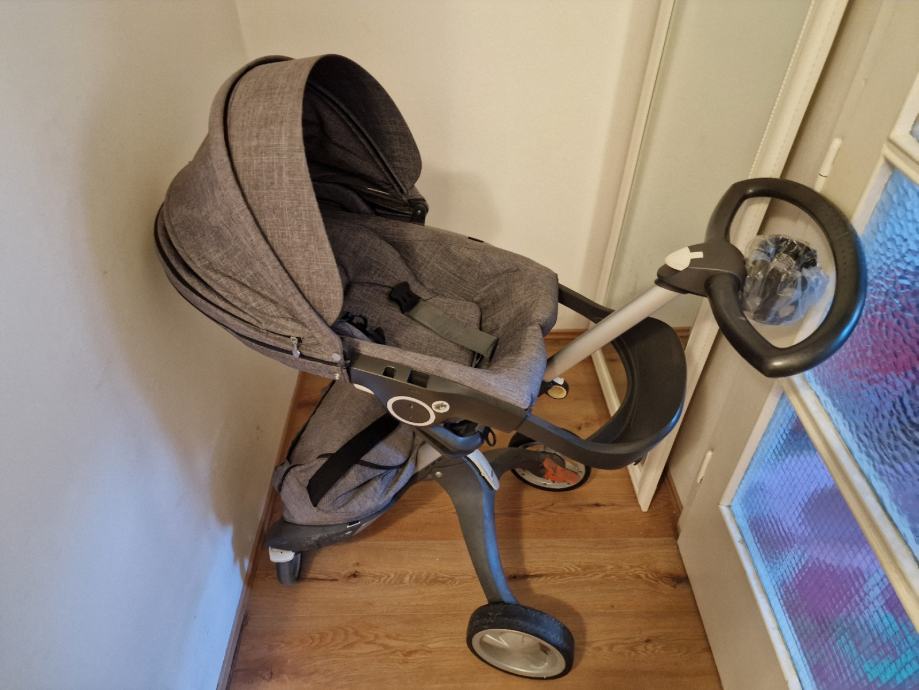 Prodajem stokke kolica, košara za novoroðenĉe I sportski dio. Sportski dio također ima umetak za novoroðenče. Držač za čašu, suncobran, navlake za kišu dolaze skupa sa kolicima i footmuf u istoj boji.