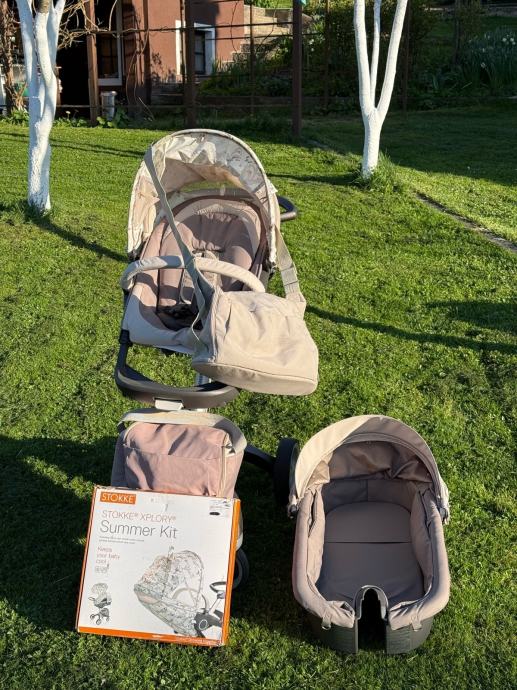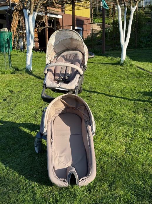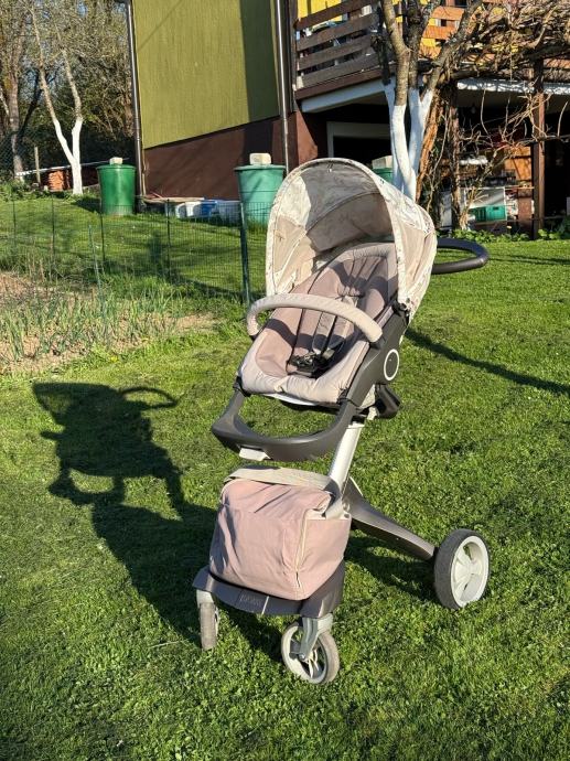 Stokke kolica sa kadicom i sportskim sjedalom, torbom ispod kolica i torbom za naprijed i na rame, ljetnim kompletom za toplije Dane, kišobranom i najlonom protiv kiše