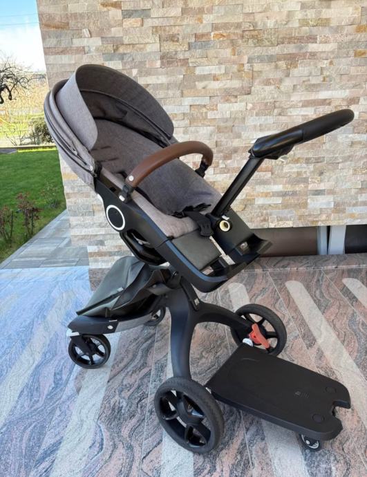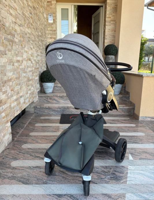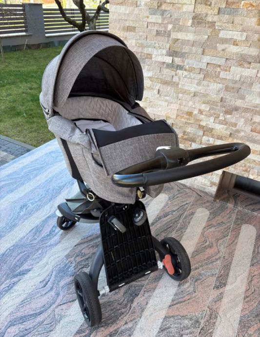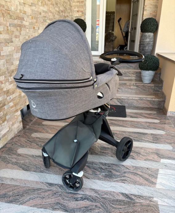 Stokke košara i sportski dio + šasija, te uz kolica dajemo i krzno za zimu te pripadajuću torbu za dječje stvari.