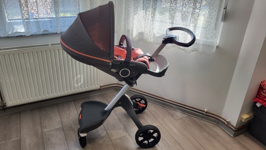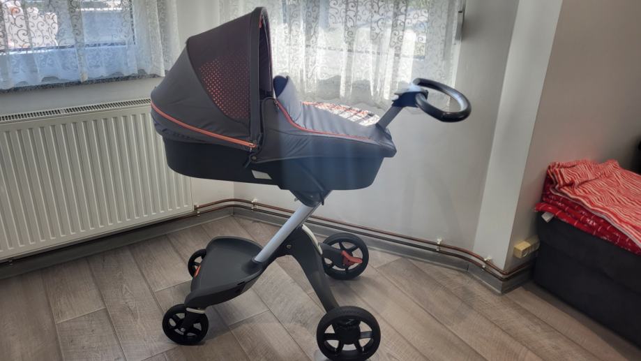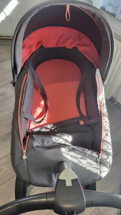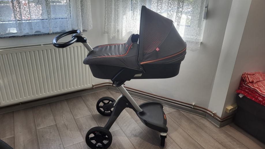 Prodajem Stokke Xplory V5 limited edition 2u1 kolica. Na kolicima su vidljivi standardni tragovi korištenja koji ne utječu na funkcionalnost kolica. Očuvana, u vrlo dobrom stanju. Uz kolica dolazi zaštita za kišu, torba, sportski dio, umetak za sportski dio (namijenjen vožnji novorođenčeta) i košara za novorođenče.