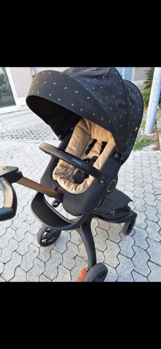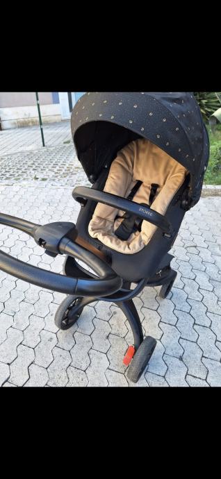 Prodajem nova Stokke xplory sygnature gold black kolica- sportski dio (za bebe od starosti 4 mjeseca pa do 2 godine). Kolica je koristilo 1 dijete 4 mjeseca tako da su kao nova. Uz kolica dajem i Stokke zašitu za kolica od kiše te original torbu za kolica za pohranu pelena, igrački i potrepština tijekom vožnje bebe.