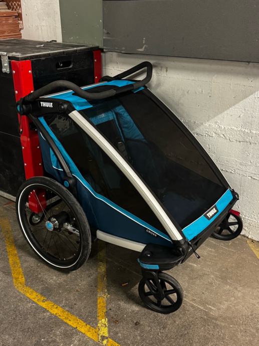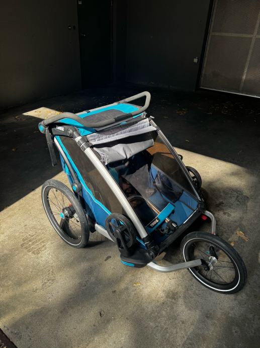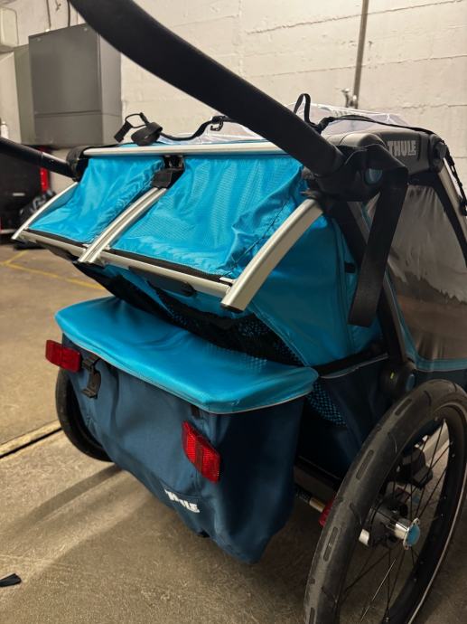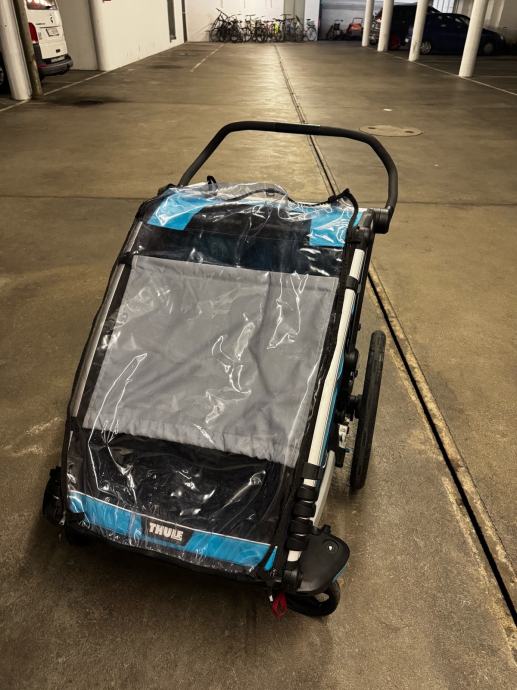 2 mala točka za upotrjebu ko Standard dječja kolica ,priklučni adapter za bicikli, prekrivač za kišu , prekrivač protiv sunca . Svi dokumenti i knjige za montažu ,Original Račun kupovine 1190eur .