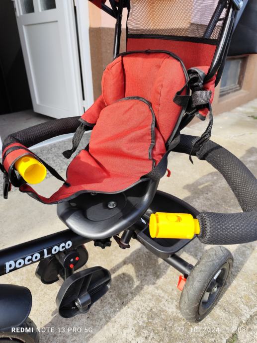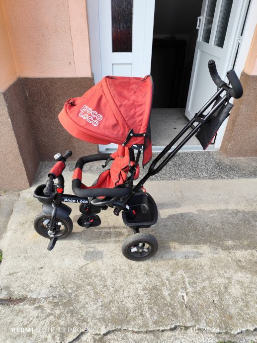 Prodajem crveni tricikl "Poco loco" proizvođača JUNGLE. Očuvan, kvalitetan, malo korišten i sastavljen. Ostale informacije s web trgovine: Rotacija sjedala, kvačilo na prednjim kotačima, alu felge, košara, torbica, gumeni kotači na napuhavanje.
