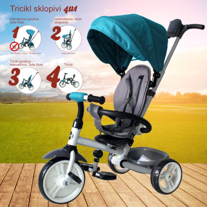 Višenamjenski sklopivi 4 u 1 tricikl - guralica za djecu od jedne do četiri godine.