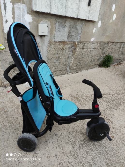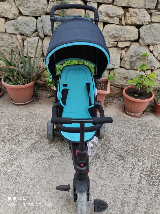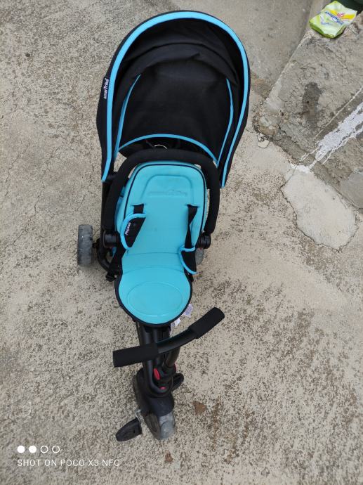 Tricikl namjenjen djeci od 10 mjeseci do 3 godine. Može se upravljati roditeljskom ručkom ili prebacite na dječje kontrole.